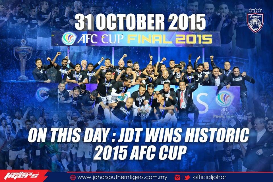 Johor Darul Ta'zim FC (JDT) won a historic AFC Cup trophy on this day three years ago. October 31, 2015 will be a date forever etched in the history of the Southern Tigers. [1/4]