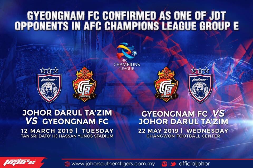 The matches between both clubs are scheduled for the 12th of March 2019 at the Tan Sri Dato' Haji Hassan Yunos Stadium and the 22nd of May 2019 at the Changwon Football Center. Luaskan Kuasamu Johor.