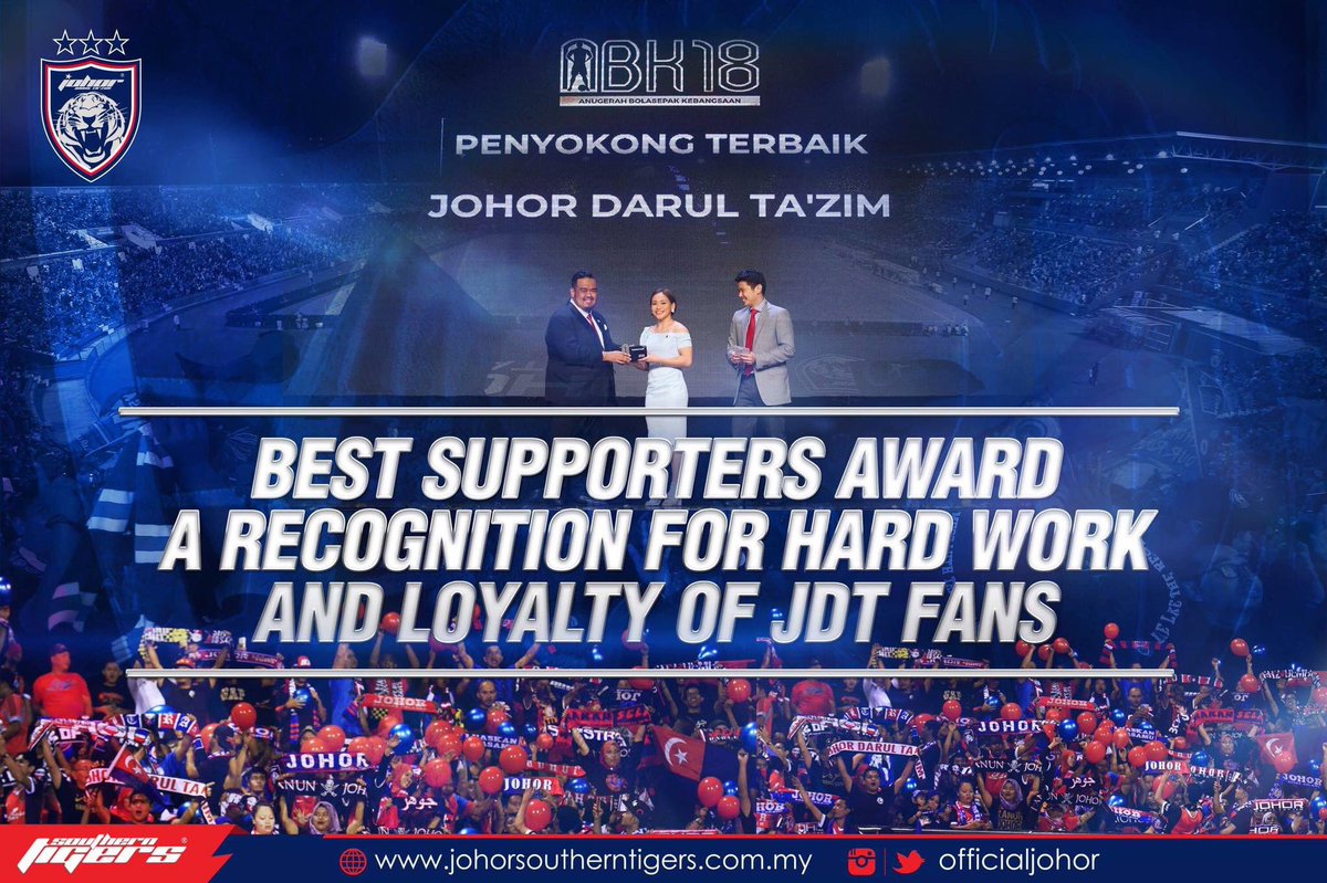 The award is a recognition for the hard work and loyalty of the fans who have never stopped supporting JDT whether the club are playing at the peak level or struggling with various issues.