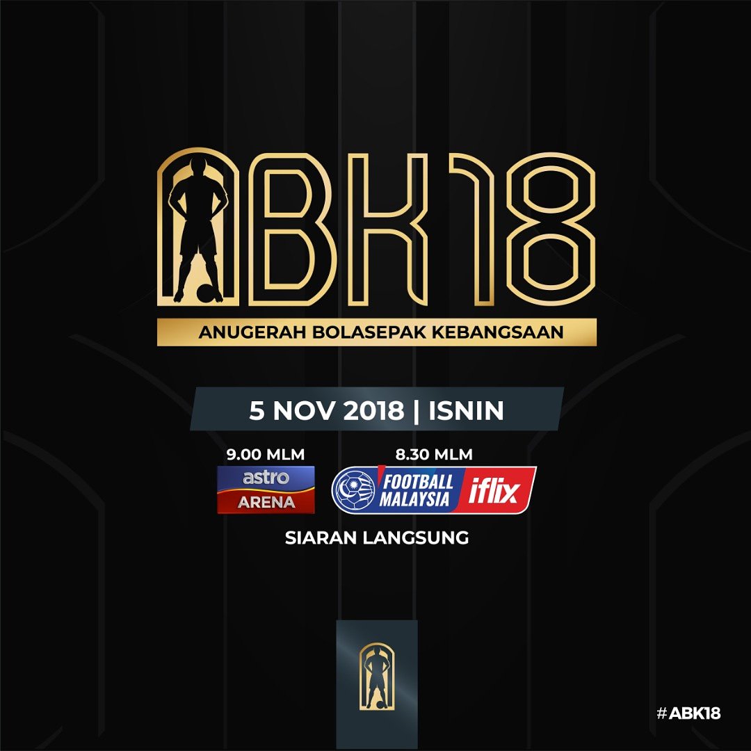 5 NOVEMBER 2018 BAKAL MENYAKSIKAN SIAPAKAH PEMAIN-PEMAIN DALAM KANCAH LIGA MALAYSIA YANG BAKAL MERANGKUL ANUGERAH-ANUGERAH DITAWARKAN PADA ANUGEREAH BOLASEPAK KEBANGSAAN 2018 (#ABK18) ANTARANYA PEMAIN PALING BERNILAI, PEMAIN MUDA HARAPAN, JURULATIH TERBAIK, ANUGERAH KOMUNITI DAN BERBAGAI LAGI.