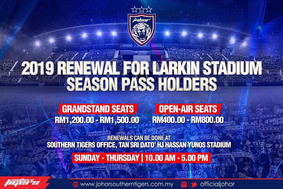 We are pleased to inform all 2018 season pass holders at the Tan Sri Dato Haji Hassan Yunos Stadium, Larkin can renew their passes for next year (2019). [1/3]