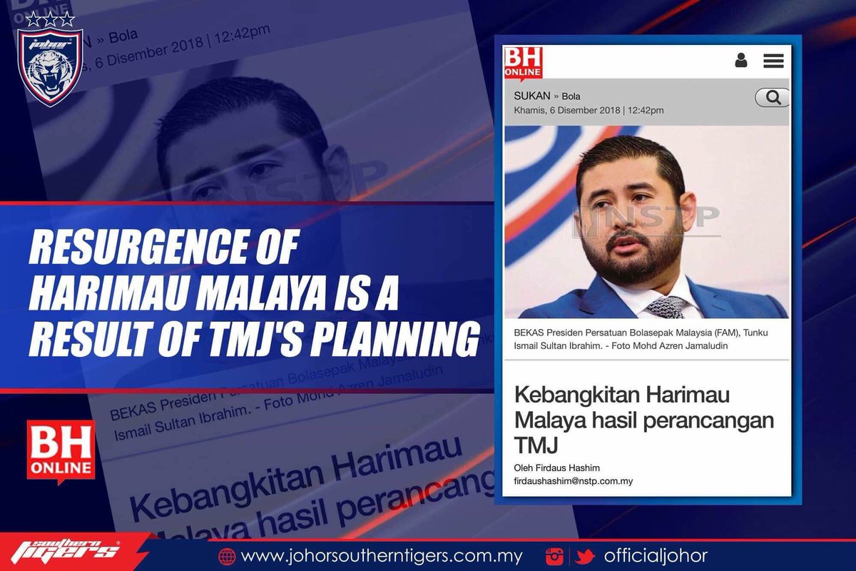 An article by Berita Harian reported on the resurgence of the national football team as the result of planning by the Football Association of Malaysia's (FAM) former president, HRH Major General Tunku Ismail Ibni Sultan Ibrahim, Crown Prince of Johor. [1/5]