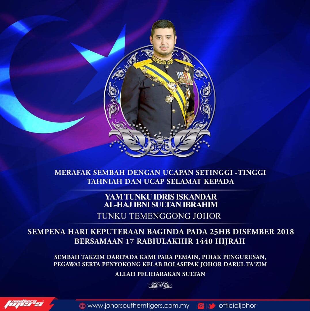 Sincerely from players, the management, officers and supporters of Johor Darul Ta'zim FC. Allah Peliharakan Sultan.