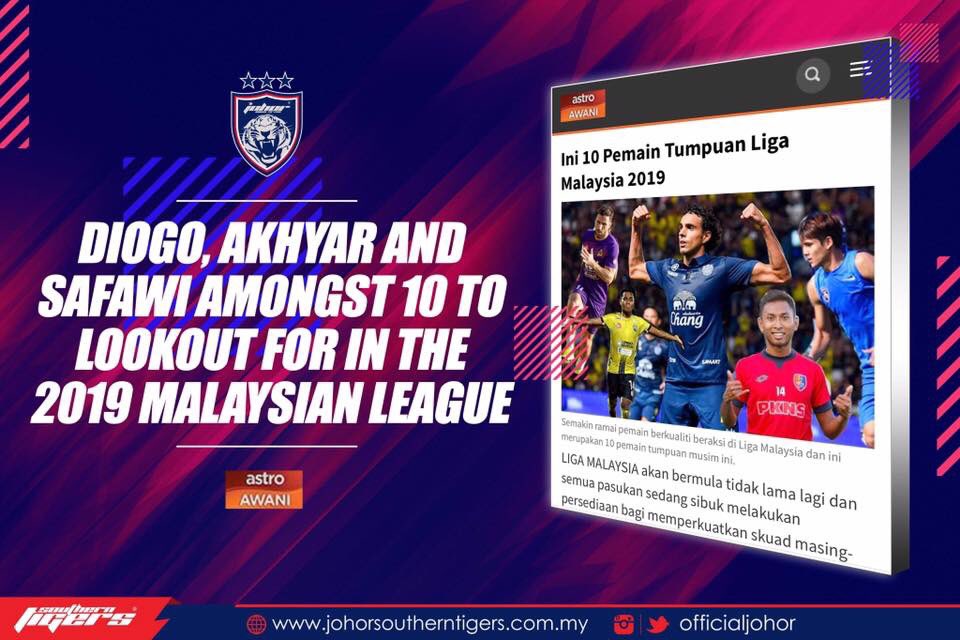 Diogo Santo, Akhyar Rashid and Safawi Rasid were listed by Astro Awani in the top 10 players to lookout for in the Malaysia Super League 2019. [1/3]