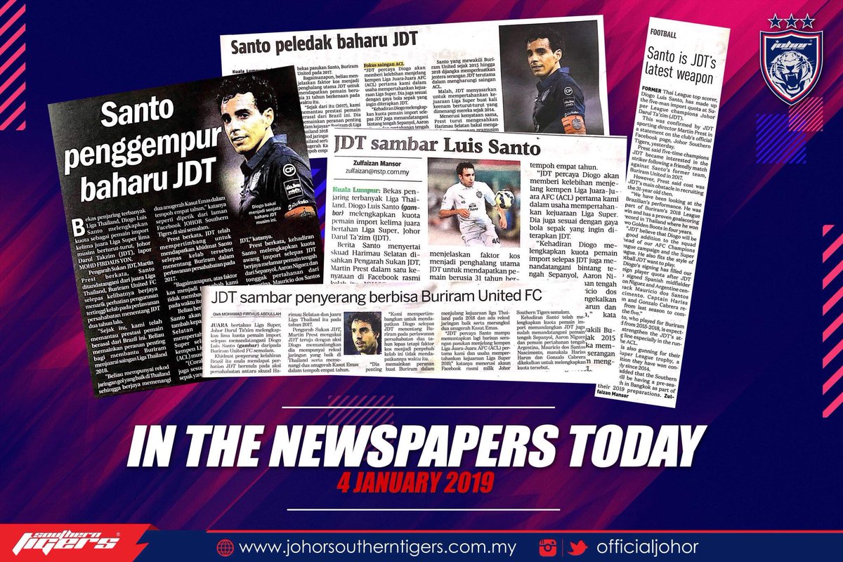 Introduction of the new Johor Darul Ta'zim FC (JDT) foreign player, Diogo Luís Santo to strengthen the club has stolen the attention of local newspapers. [1/3]