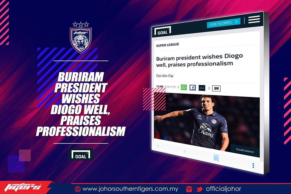 Johor Darul Ta'zim FC recently signed new foreign player Diogo Luis Santo. The former striker of the Thailand League champions Buriram United had haboured intentions of finding a new club since the start of 2018. [1/4]