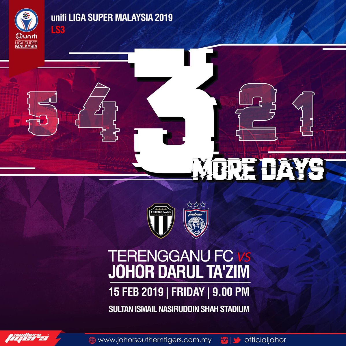 3 more days to go to the unifi Liga Super Malaysia 2019 between Terengganu FC and JDT at the Sultan Ismail Nasiruddin Shah Stadium, Kuala Terengganu on 15th of February 2019.