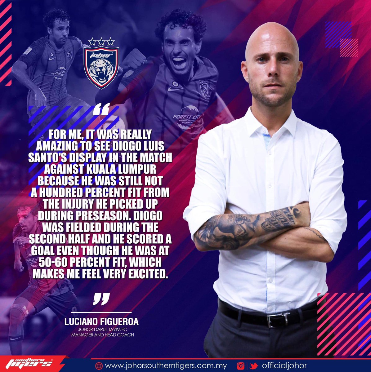 For me, it was really amazing to see Diogo Luis Santo's display in the match against Kuala Lumpur because he was still not a hundred percent fit from the injury he picked up during preseason. [1/2]