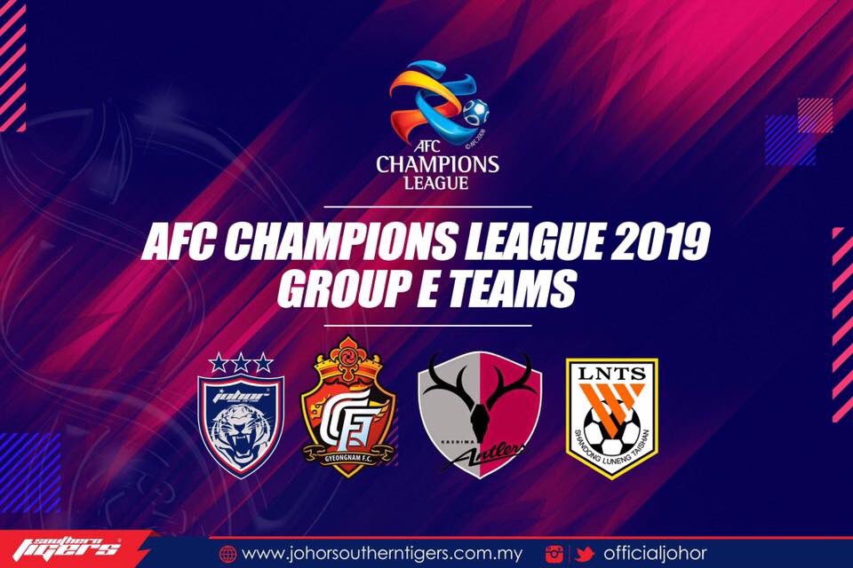 Johor Darul Ta'zim FC (JDT) are in Group E for the AFC Champions League 2019 group stage. Also in the same group as JDT are Gyeongnam FC of the Republic of Korea, Shandong Luneng of the People's Republic of China, and Japanese representatives Kashima Antlers. [1/3]