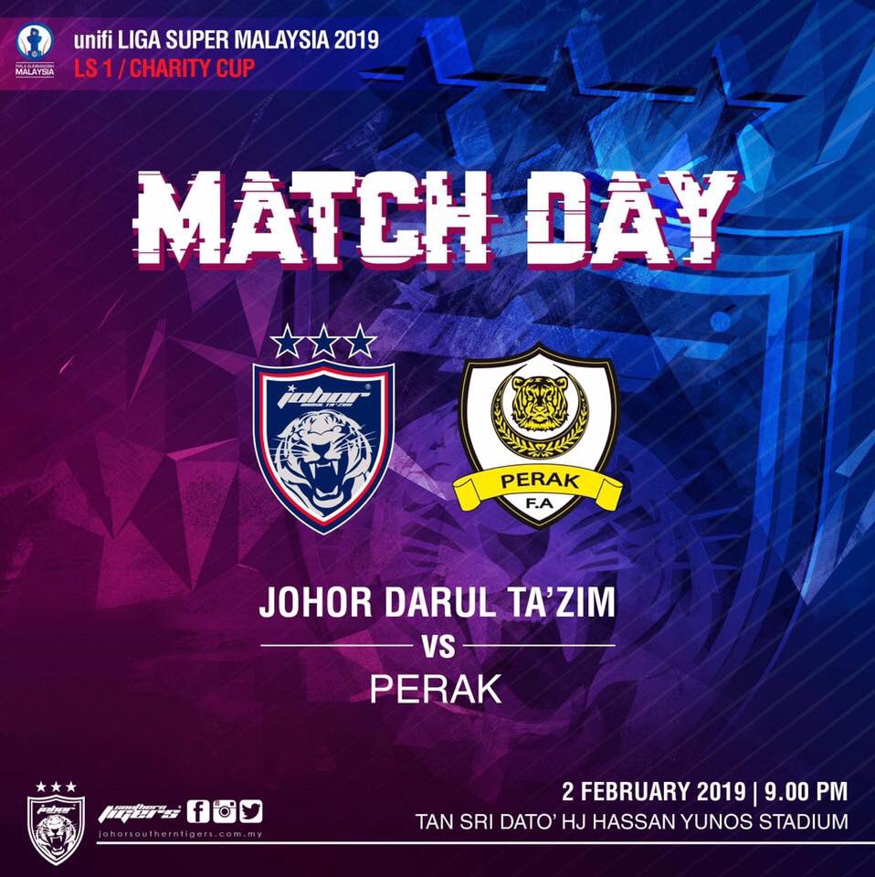 The Charity Cup 2019 match between JDT and Perak will kick-off this Saturday, 2nd of February 2019 at the Tan Sri Dato’ Haji Hassan Yunos Stadium, Larkin at 9.00pm.