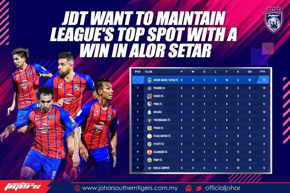 After enduring six matches in the Malaysia Super League 2019 and successfully picking up 16 out of the maximum 20 points, Johor Darul Ta'zim FC (JDT) will visit Alor Setar for a match against Kedah on the 29th of March 2019. [1/4]