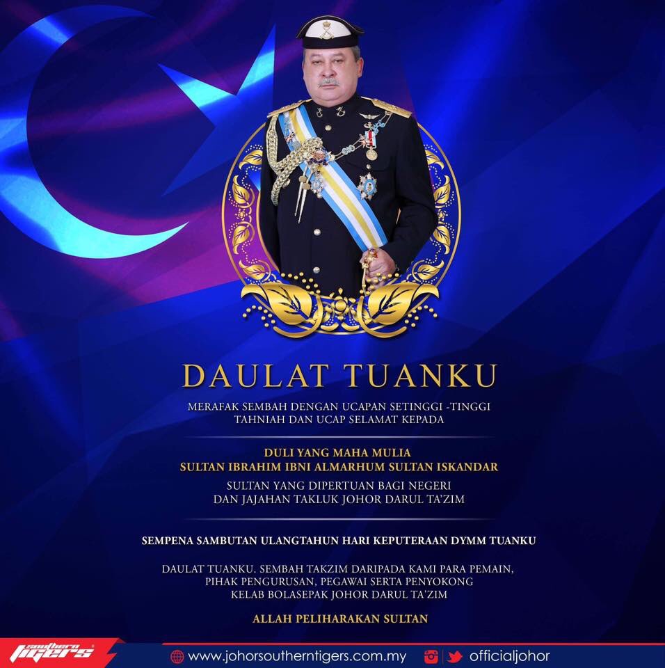 Daulat Tuanku. Sincerely from the players, management, officers and supporters of Johor Darul Ta'zim FC. Allah Peliharakan Sultan.