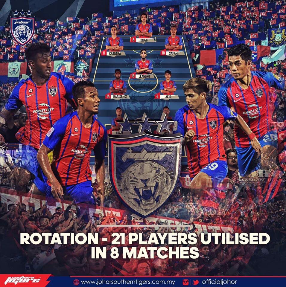 Player rotation is key to ensuring JDT can mount a respectable challenge on all fronts. JDT compete in four competitions - including the AFC Champions League compared to the three other Malaysian teams participate in.