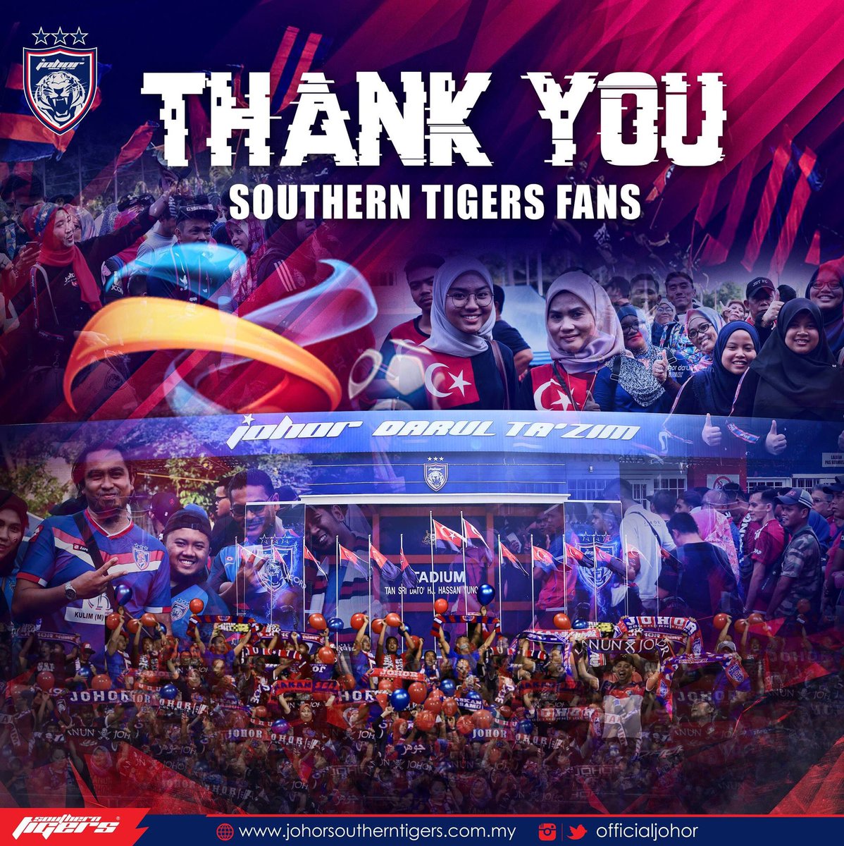 Thank you to all the JDT fans coming to the Tan Sri Dato' Haji Hassan Yunos Stadium, Larkin and giving your undivided support. Luaskan Kuasamu Johor.