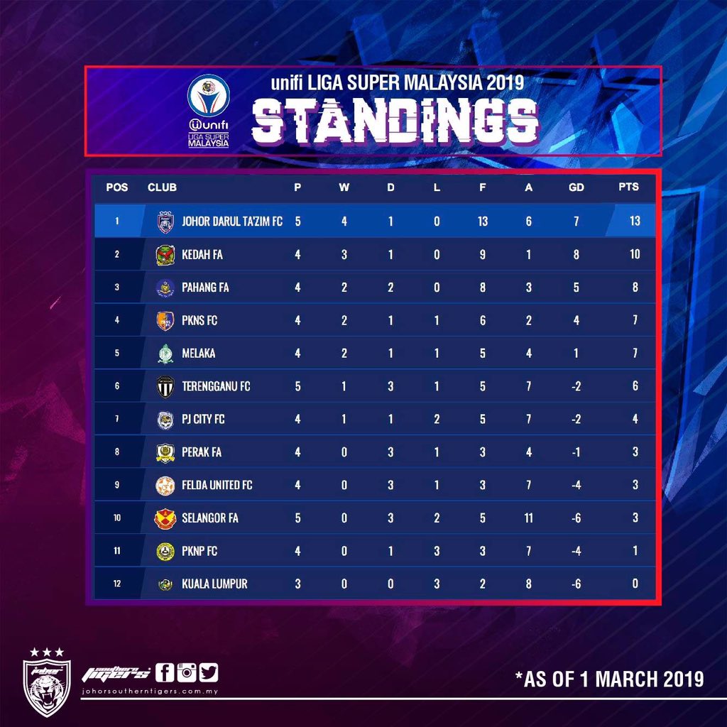 unifi LIGA SUPER MALAYSIA 2019 STANDINGS Mac 01, 2019 Dapatkan pautan Facebook X Pinterest E-mel Apl Lain unifi LIGA SUPER MALAYSIA 2019 STANDINGS Log on to http://msl.johorsoutherntigers.com.my *subject to change Ulasan