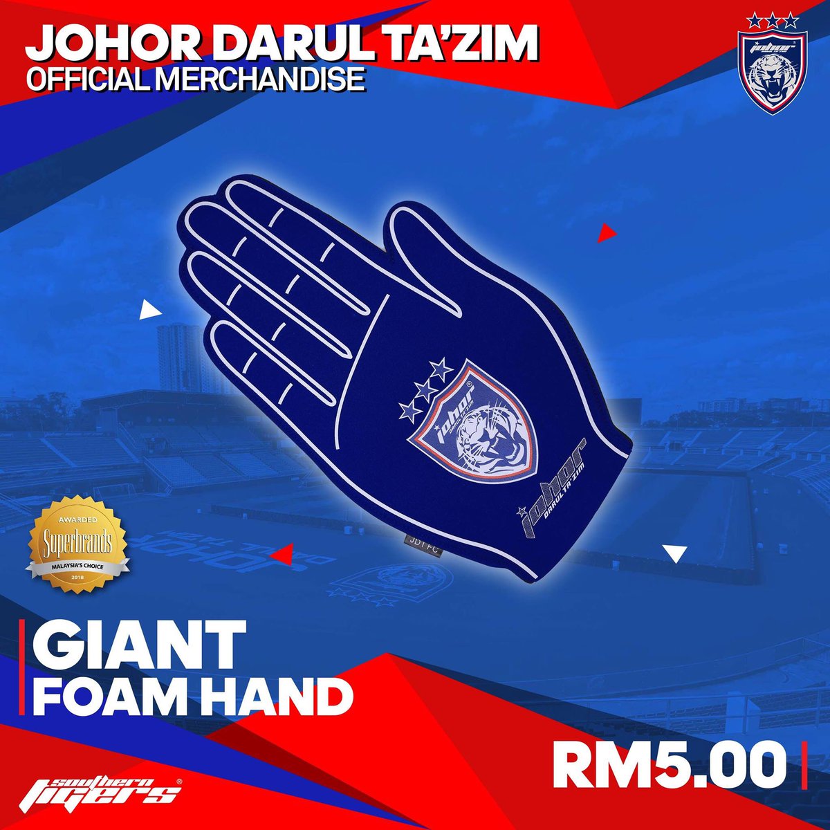Get the official JDT merchandise by Southern Tigers Sdn Bhd (STSB) that is now made available for all JDT Fans. Don't miss out on the opportunity to own the various JDT official merchandise and show your proud support for the club today.
