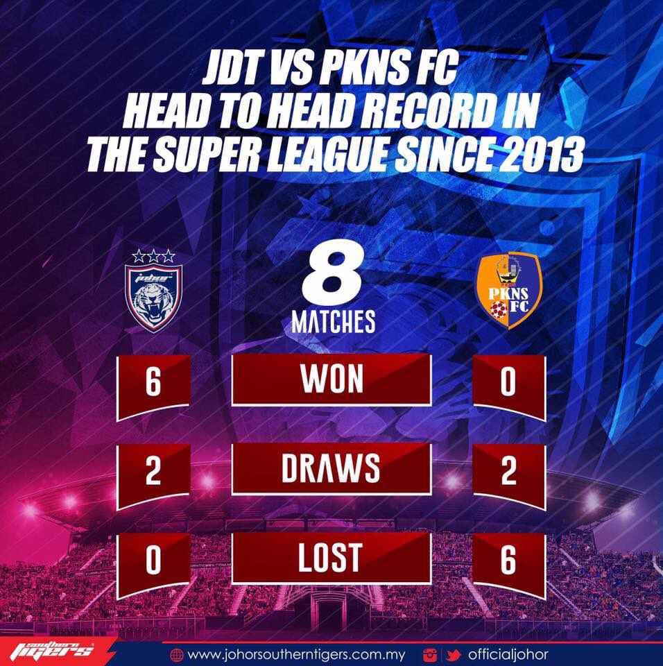 Based on their records in the 8 meetings, JDT have recorded 6 wins and 2 draws. JDT have scored 14 goals and conceded 4 against PKNS FC throughout the history of meetings between both teams.