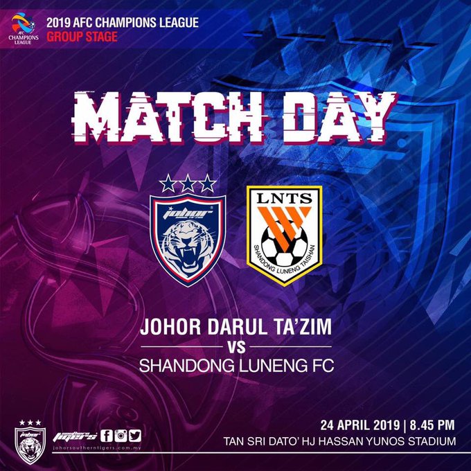 The 2019 AFC Champions League match between JDT and Shandong Luneng FC will kick-off this Wednesday, at the Tan Sri Dato’ Haji Hassan Yunos Stadium, Larkin at 8.45pm.