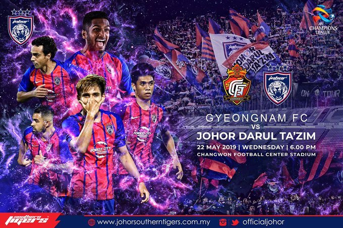 The 2019 AFC Champions League match between Gyeongnam FC and Johor Darul Ta'zim FC (JDT) will kick-off this Wednesday, 22nd of May 2019 at the Changwon Football Center Stadium, Republic of Korea at 6.00pm (Malaysia Time). [1/2]