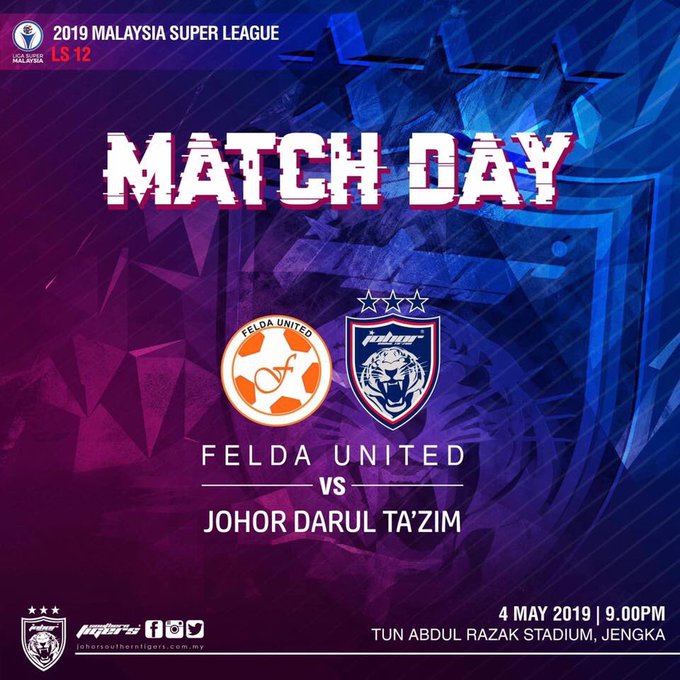 The 2019 Malaysia Super League match between Felda United and JDT will kick-off this Saturday, 4th of May 2019 at the Tun Abdul Razak Stadium, Jengka at 9.00pm.