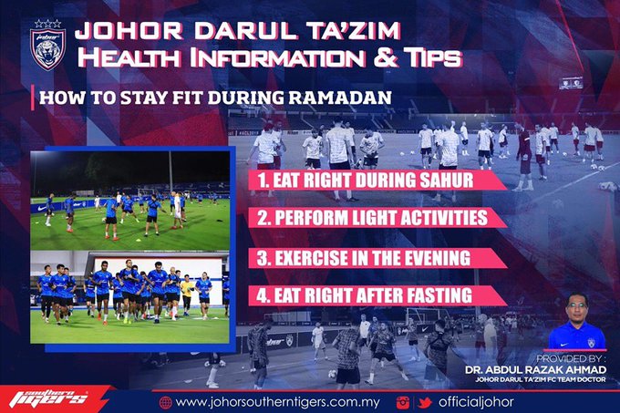 This health information is provided by Dr Abdul Razak Ahmad, team doctor of Johor Darul Ta'zim FC (JDT).