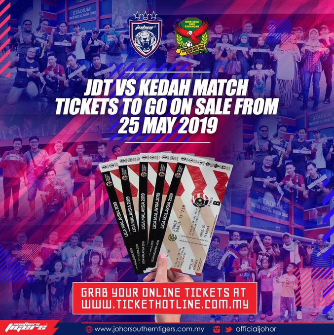 Tickets to watch the 2019 Malaysia Super League between JDT and Kedah will go on sale at ticketing counters from 9.00am on the 25th of May 2019.