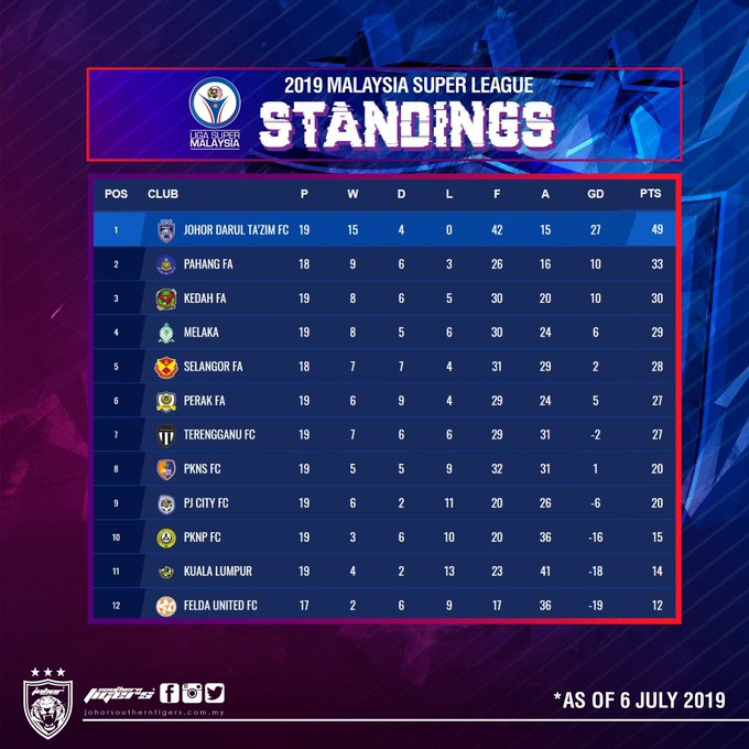 2019 MALAYSIA SUPER LEAGUE STANDINGS Julai 06, 2019 Dapatkan pautan Facebook X Pinterest E-mel Apl Lain 2019 MALAYSIA SUPER LEAGUE STANDINGS Log on to (link: http://msl.johorsoutherntigers.com.my) msl.johorsoutherntigers.com.my *subject to change Ulasan