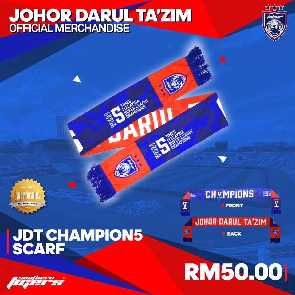 Get the official Johor Darul Ta'zim FC (JDT) merchandise by Southern Tigers Sdn Bhd (STSB) that is made available for all JDT Fans.