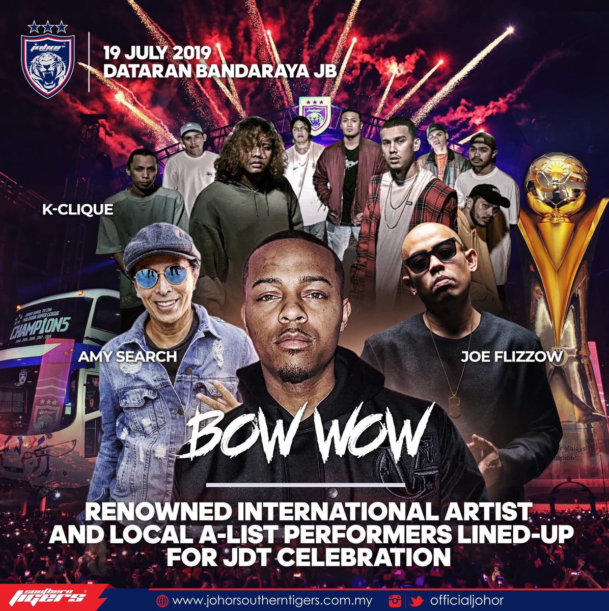 International rapper Bow Wow will perform at Johor Darul Ta'zim FC's (JDT) record sixth Malaysia Super League title celebration at Dataran Bandaraya Johor Bahru on July 19. [1/5]