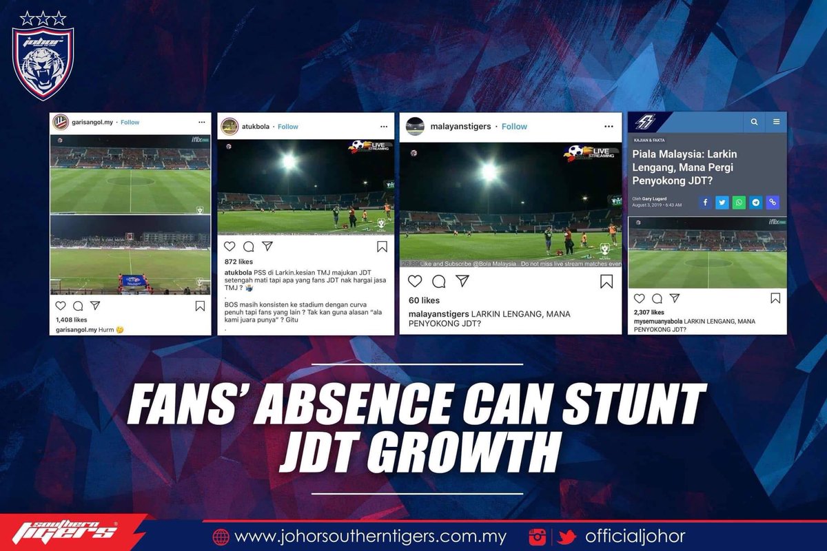 In terms of the latest facilities to the new stadium that is nearing completion, but the attendance of the fans is not seen to be on par with JDT's development and achievements.