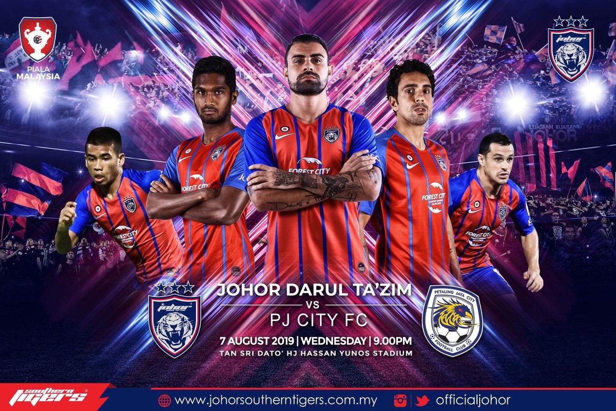 The 2019 Malaysia Cup match between JDT and PJ City FC will kick-off this Wednesday, 7 August 2019 at the Tan Sri Dato’ Haji Hassan Yunos Stadium, Larkin at 9.00pm.