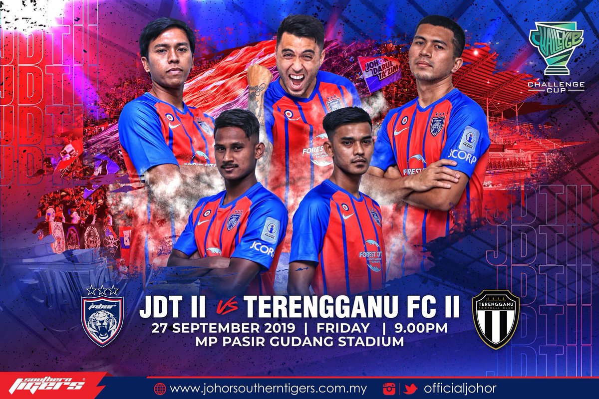 The Challenge Cup 2019 Semi-Finals match between JDT II and Terengganu FC II will kick-off this Friday, 27 September 2019 at the Majlis Perbandaran Pasir Gudang Stadium at 9.00pm.