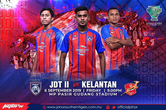 The Challenge Cup 2019 match between Johor Darul Ta'zim II and Kelantan will kick-off this Friday, 6 September 2019 at the Majlis Perbandaran Pasir Gudang Stadium at 9.00pm.