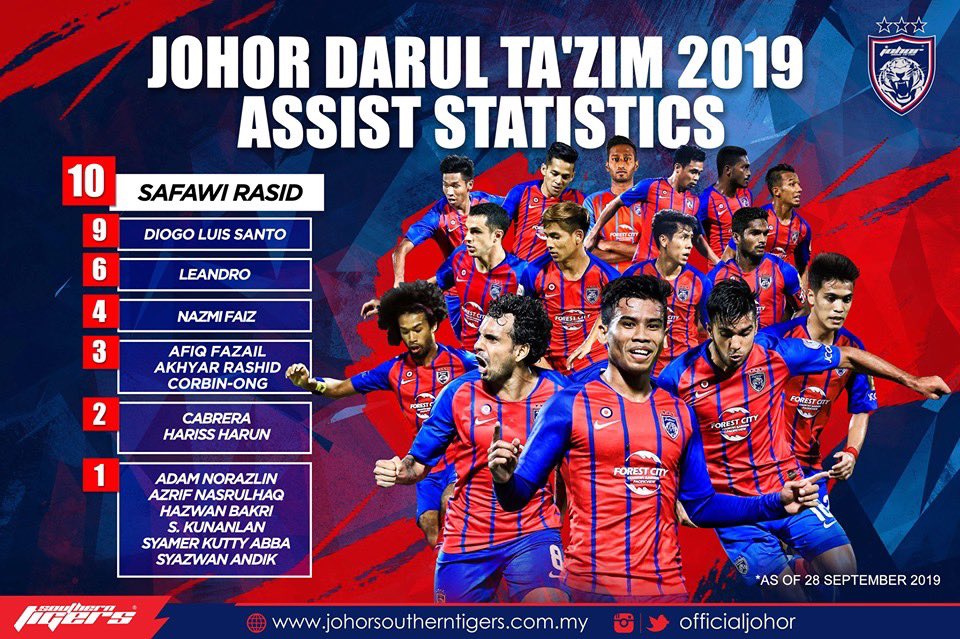 JOHOR DARUL TA'ZIM 2019 ASSIST STATISTICS Oktober 09, 2019 Dapatkan pautan Facebook X Pinterest E-mel Apl Lain JOHOR DARUL TA'ZIM 2019 ASSIST STATISTICS *as of 28 September 2019 Hidup Johor Demi Johor #HarimauSelatan #SouthernTigers #PermataSelatan #JewelOfTheSouth #JDTuntukSemua #JDTforAll Ulasan