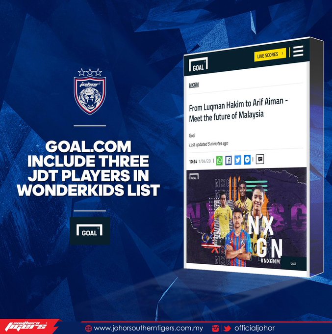 Johor Darul Ta'zim FC's Arif Aiman Hanapi, Umar Hakeem Suhar Redzuan and Firdaus Kaironnisam were shortlisted in a list of Malaysian wonderkids compiled by http://Goal.com. [1/4]