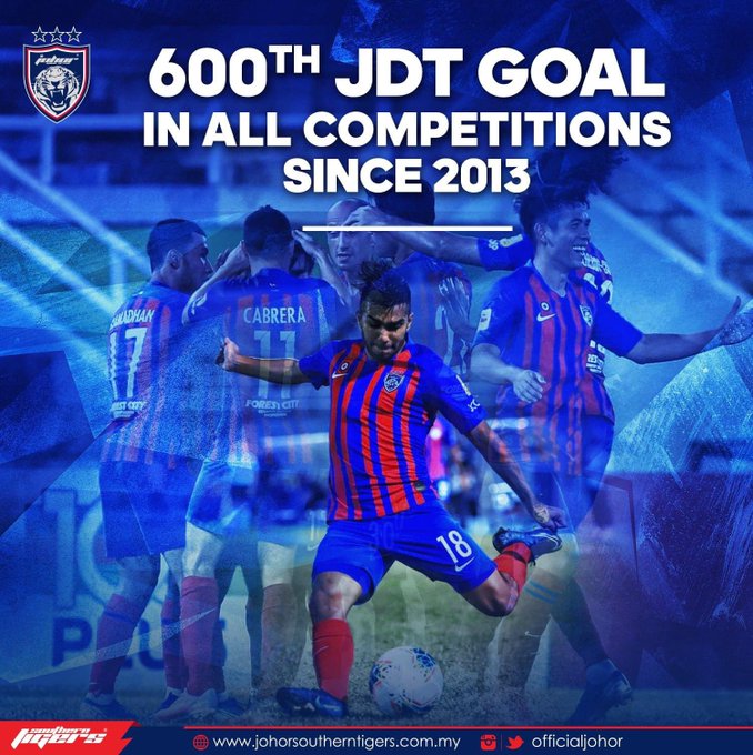 JDT have scored 317 goals in the Malaysia Super League, 50 in the FA Cup, 140 in the Malaysia Cup, 83 in the AFC Cup and 12 in the AFC Champions League. Luaskan Kuasamu Johor.