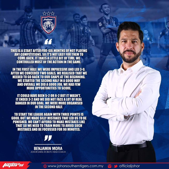 To start the league again with 3 points is good, but we made silly mistakes that led us to be punished. We can’t afford to make mistakes like that so we need to train more to avoid such mistakes & be focussed for 90 minutes.